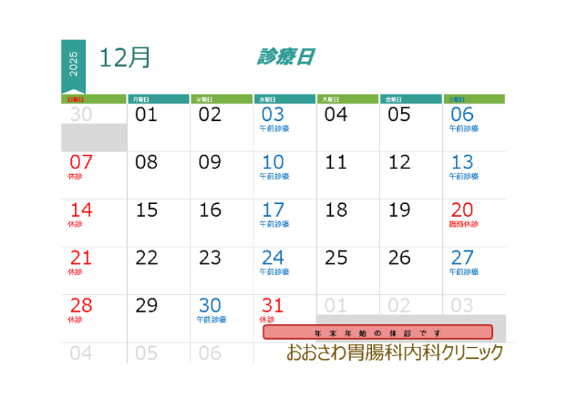 12月の診療日のお知らせ