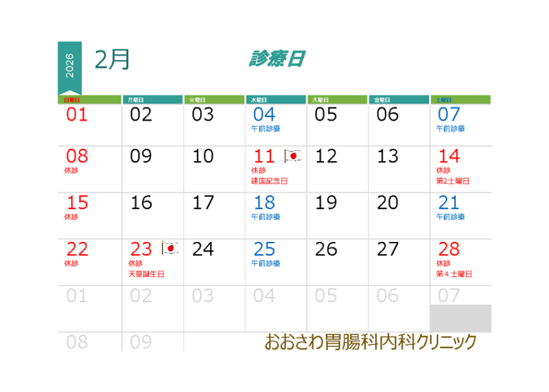 2月の診療日のお知らせ