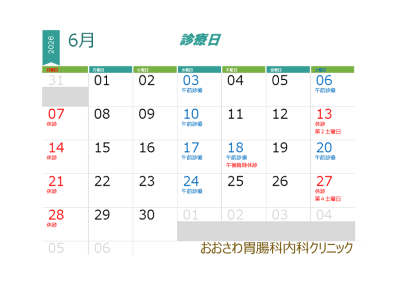6月診療日のお知らせ